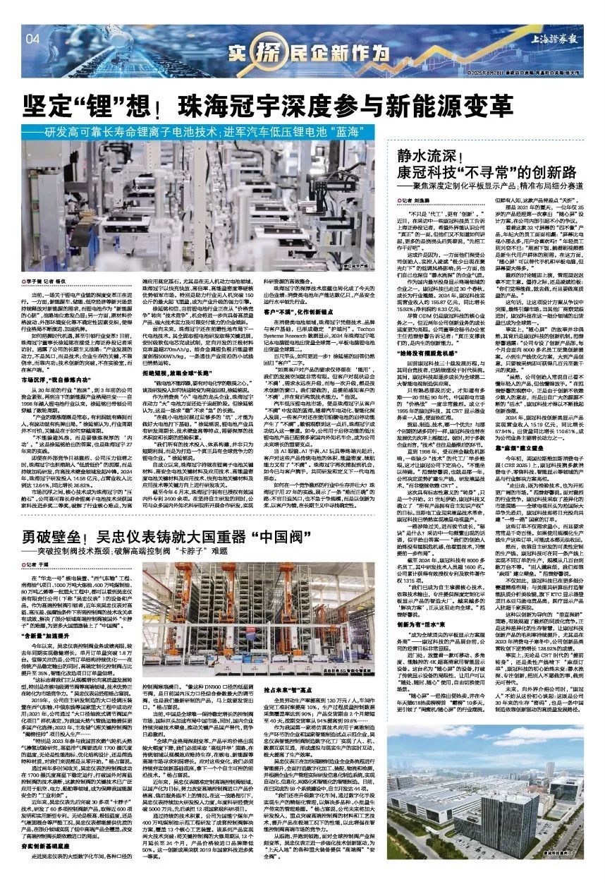 通過兩年多時間攻關,吳忠儀表的控制閥成功在1700攝氏度高溫下穩定運行,打破國外對高溫控制閥的技術壟斷,這款控制閥的關鍵技術已廣泛應用于航空、電力、船舶等領域,成為保障我國能源安全的“工業利劍”。