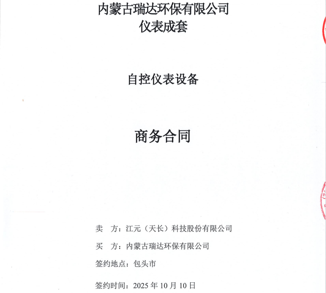 1010日,江元科技成功簽約內蒙古瑞達環保有限公司儀表成套供貨合同。本次項目中,江元科技將為瑞達環保提供包括84PRS雷達液位計、56WDM在線水質分析儀表、28WDM壓力開關,以及91JY系列電磁流量計在內的全套自動化儀表解決方案。