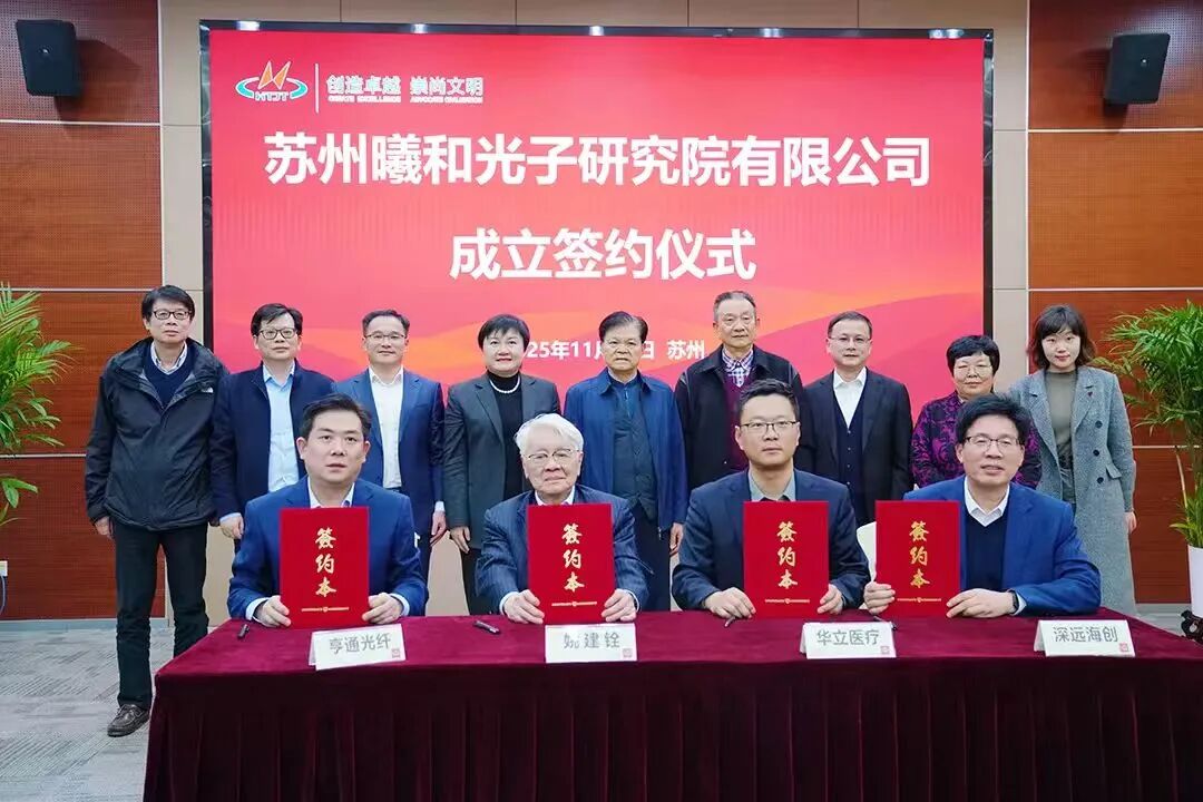 11月17日,中國科學院院士姚建銓團隊與江蘇亨通光電股份有限公司(以下簡稱“亨通光電”)簽約成立蘇州曦和光子研究院有限公司,正式落戶蘇州吳江太湖新城。