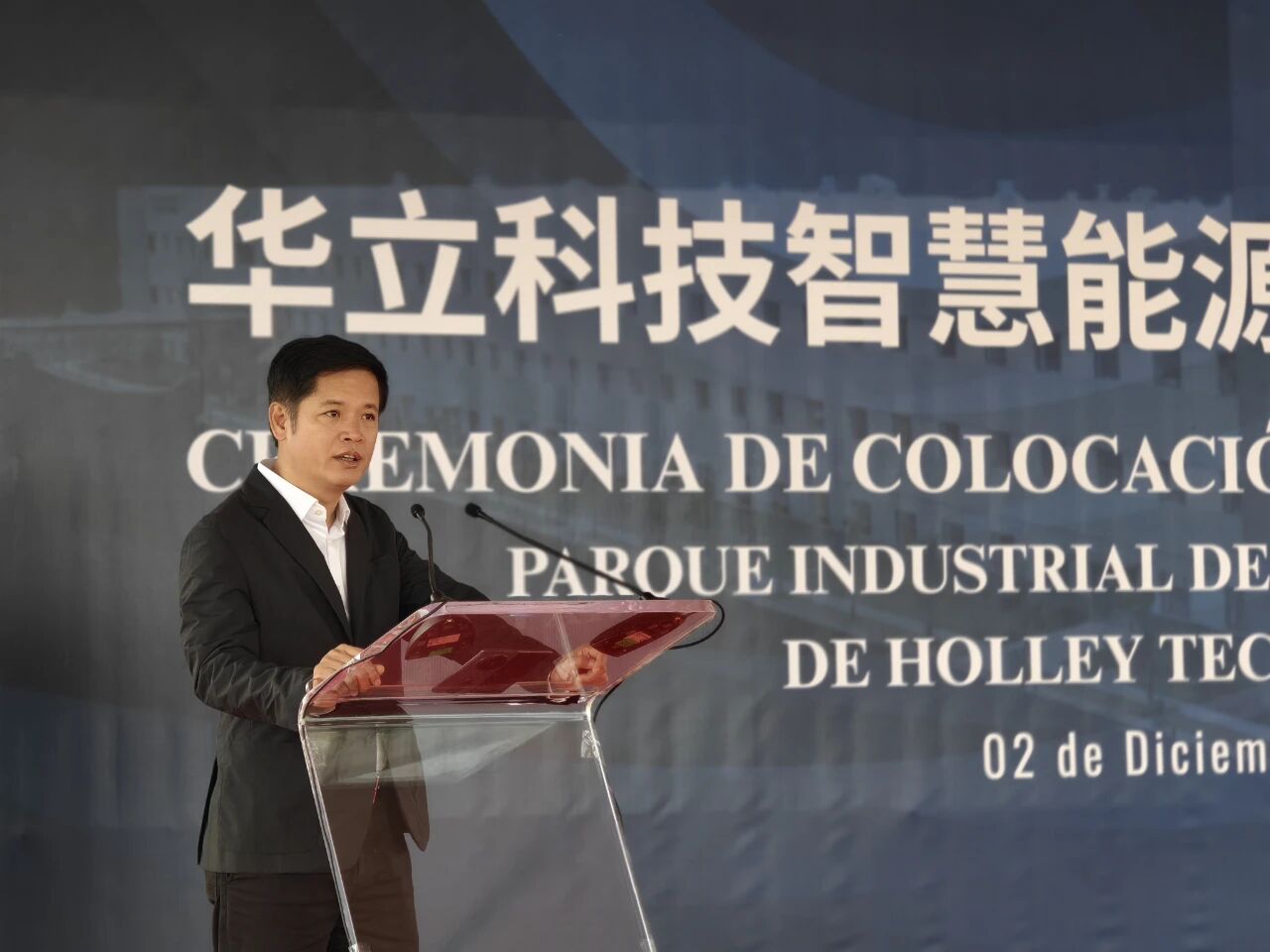 奠基儀式上,華立科技董事長鐘祥剛先生發(fā)表致辭。他表示,在華富山工業(yè)園建設(shè)智慧能源產(chǎn)業(yè)園,是公司推進國際化布局、提升產(chǎn)業(yè)能級、推動企業(yè)升級的重要舉措與關(guān)鍵一步。未來,華立科技將把該產(chǎn)業(yè)園打造為現(xiàn)代化、智能化的國際產(chǎn)業(yè)示范基地和面向美洲市場的重要產(chǎn)業(yè)基地,為美洲市場提供高質(zhì)量的能源與配網(wǎng)解決方案,同時為當(dāng)?shù)貏?chuàng)造更多就業(yè)機會、推動區(qū)域產(chǎn)業(yè)鏈協(xié)同發(fā)展,他也衷心祝愿項目一期工程順利推進、盡早建成投產(chǎn)。