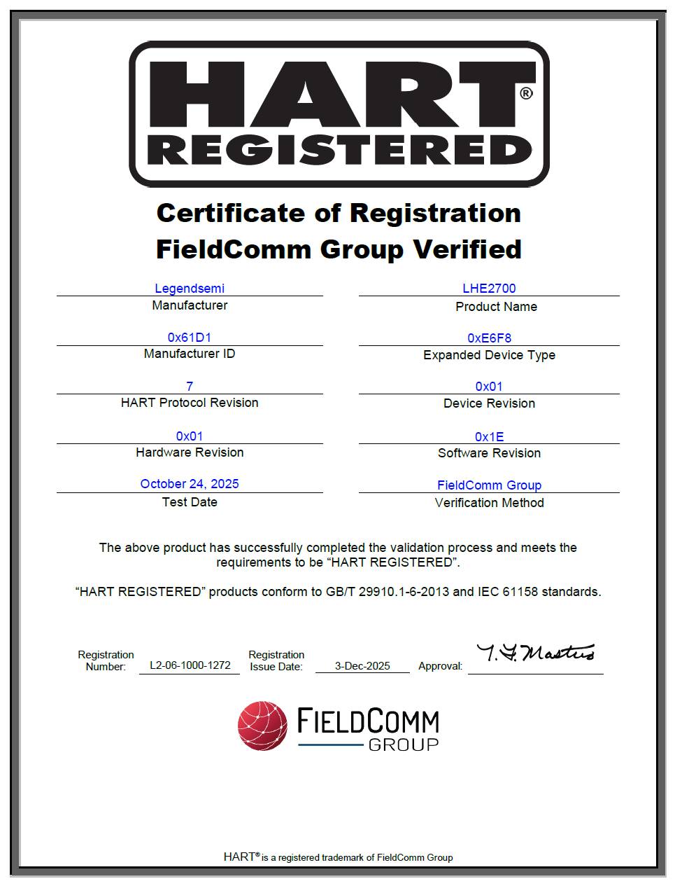 而 FieldComm Group 作為 HART 協(xié)議的權(quán)威管理機構(gòu),其認(rèn)證以嚴(yán)苛的技術(shù)標(biāo)準(zhǔn)著稱,涵蓋物理層、數(shù)據(jù)鏈路層、應(yīng)用層全鏈路測試,以及 EDD/FDI 設(shè)備包兼容性驗證。通過該認(rèn)證,意味著 LHE2700 可無縫對接主流 DCS、PLC 控制系統(tǒng)及 HART 手操器,徹底消除不同廠商設(shè)備間的通信壁壘,為工業(yè)客戶提供高可靠的 “即插即用” 解決方案。
