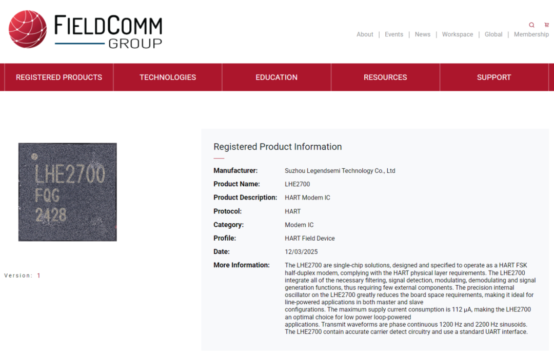 FieldComm Group官網(wǎng)頁面鏈接(點擊底部“閱讀原文”直達(dá)頁面):https://www.fieldcommgroup.org/registered-products/2ee60d01-b289-f011-b4cc-6045bd04d6a6