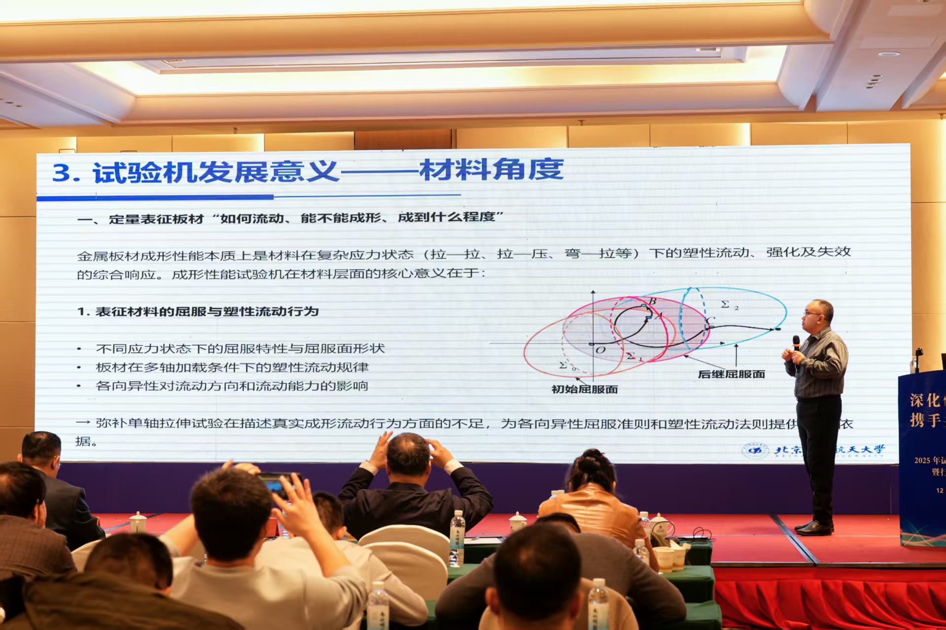 專家報告環(huán)節(jié),來自北京航空航天大學和試驗儀器行業(yè)頭部企業(yè)的專家,分別圍繞金屬材料、非金屬材料測試技術(shù)發(fā)展趨勢、高溫及極端環(huán)境應用、硬度、平衡機技術(shù)發(fā)展以及未來趨勢等主題發(fā)表精彩演講。