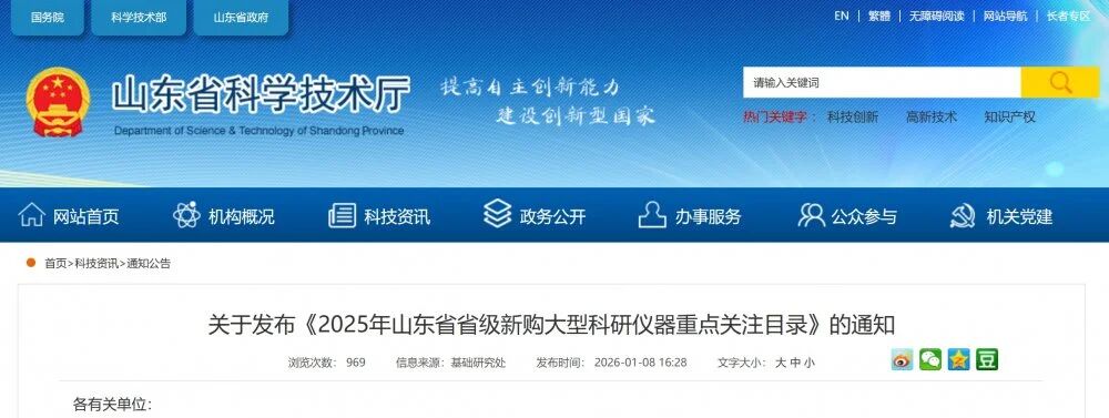 關(guān)于發(fā)布《2025年山東省省級新購大型科研儀器重點關(guān)注目錄》的通知