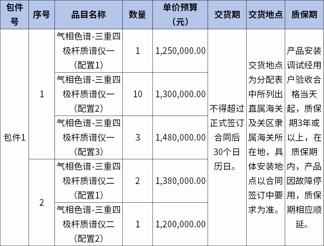 項(xiàng)目名稱: 海關(guān)總署2025年氣相色譜-三重四極桿質(zhì)譜儀(第一批)采購(gòu)項(xiàng)目(重新招標(biāo))