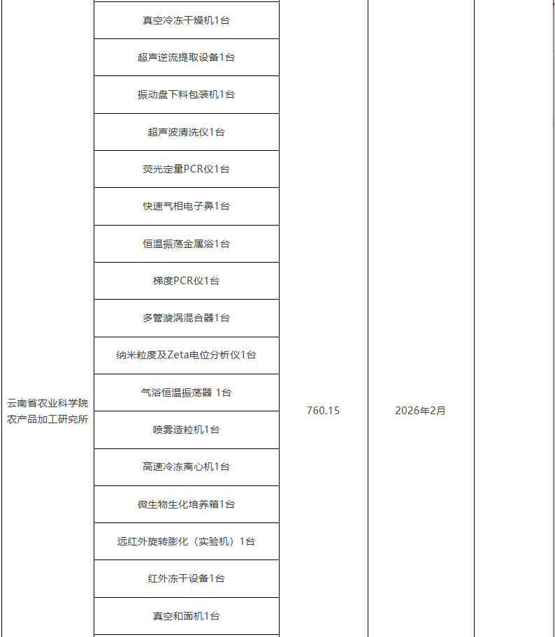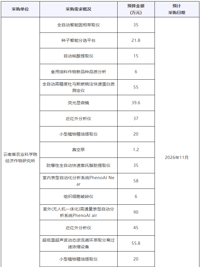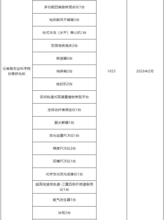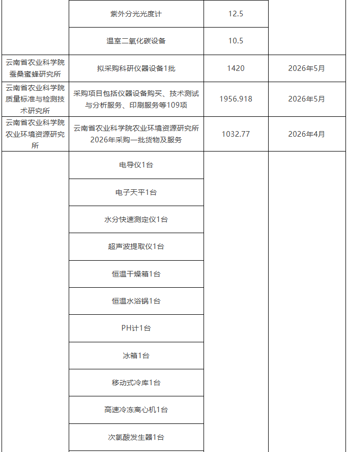 云南省農業科學院2026年儀器采購意向匯總