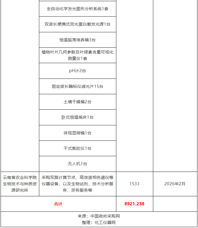 超8900萬元!云南省農業科學院采購大批科研設備
