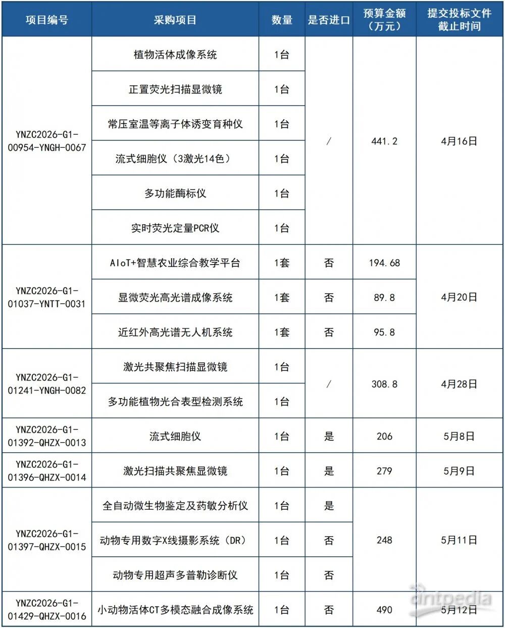 為全面提升教學(xué)科研水平,助力高水平農(nóng)業(yè)大學(xué)建設(shè),云南農(nóng)業(yè)大學(xué)近日正式公布重大教學(xué)科研儀器設(shè)備更新招標(biāo)項目,涉及園林園藝學(xué)院、理學(xué)院及動物醫(yī)學(xué)院等多個學(xué)院。本次招標(biāo)涵蓋植物活體成像系統(tǒng)、激光共聚焦掃描顯微鏡、小動物活體CT多模態(tài)融合成像系統(tǒng)、等一批尖端科研設(shè)備,總預(yù)算金額超2353萬元。