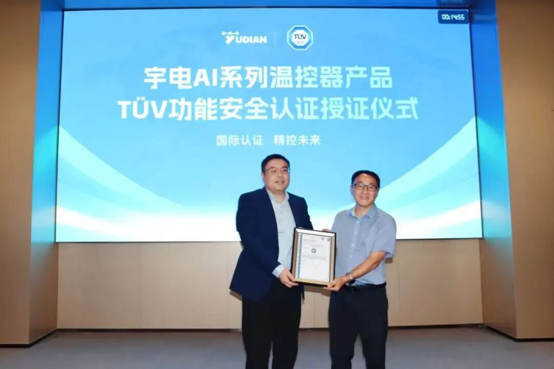 415日,宇電溫控科技AI系列溫控器TÜV南德功能安全認證授證儀式,在宇電廈門翔安產業園圓滿舉辦,TÜV南德意志集團(以下簡稱“TÜV南德”)正式為宇電AI-85X系列限溫溫控器頒發功能安全證書,宇電成為國內首個通過該認證的國產溫控器品牌。