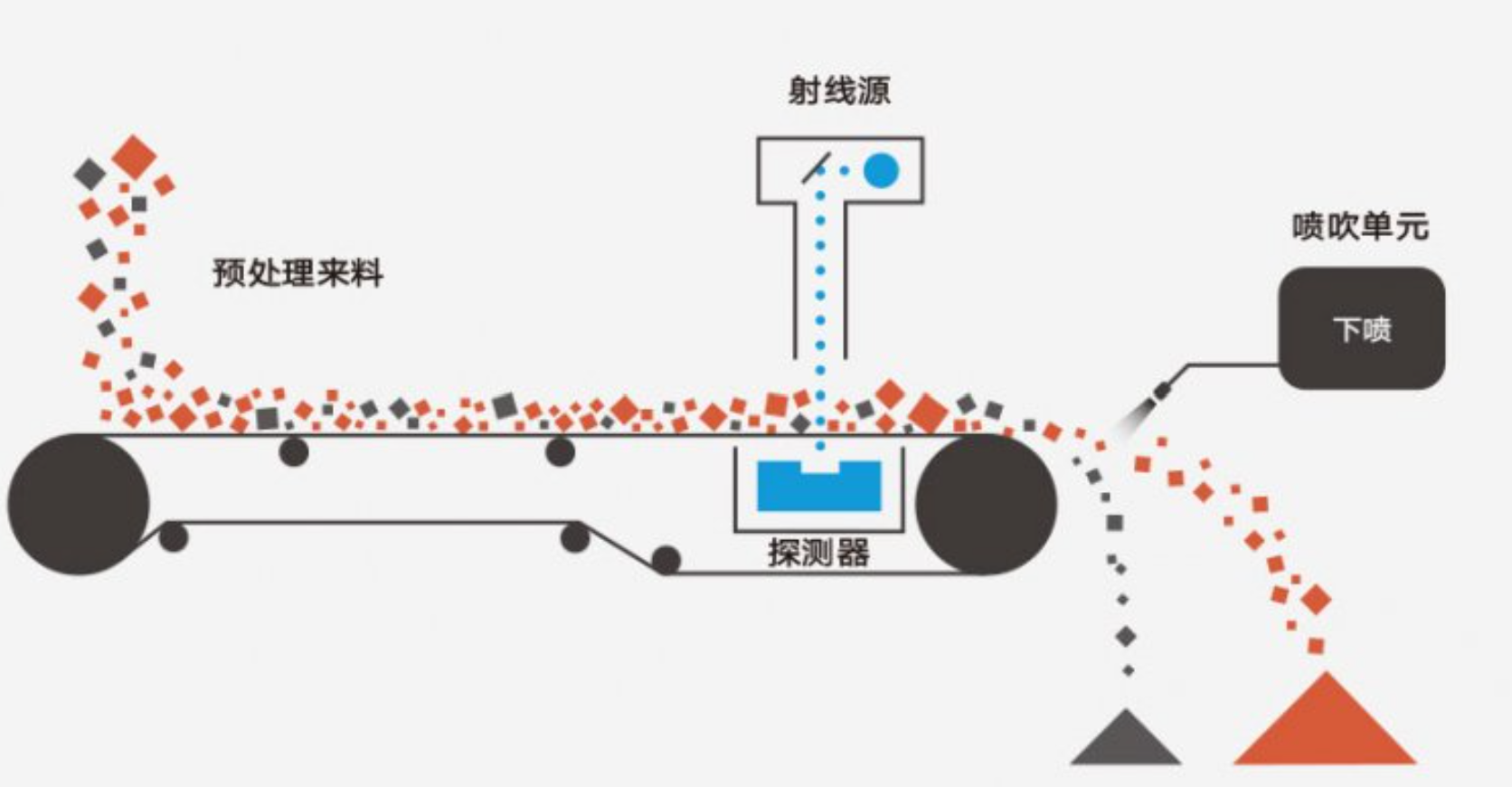 霍里思特的核心產(chǎn)品是基于X射線透視成像和AI識別算法的智能分選機。設(shè)備通過X射線探測器獲取礦石內(nèi)部結(jié)構(gòu)特征,結(jié)合AI算法識別廢石與有用礦石,最后用氣排槍實現(xiàn)精準(zhǔn)分離。整個過程無需用水,可大幅減少后續(xù)磨礦、浮選環(huán)節(jié)的無用功和藥劑消耗。